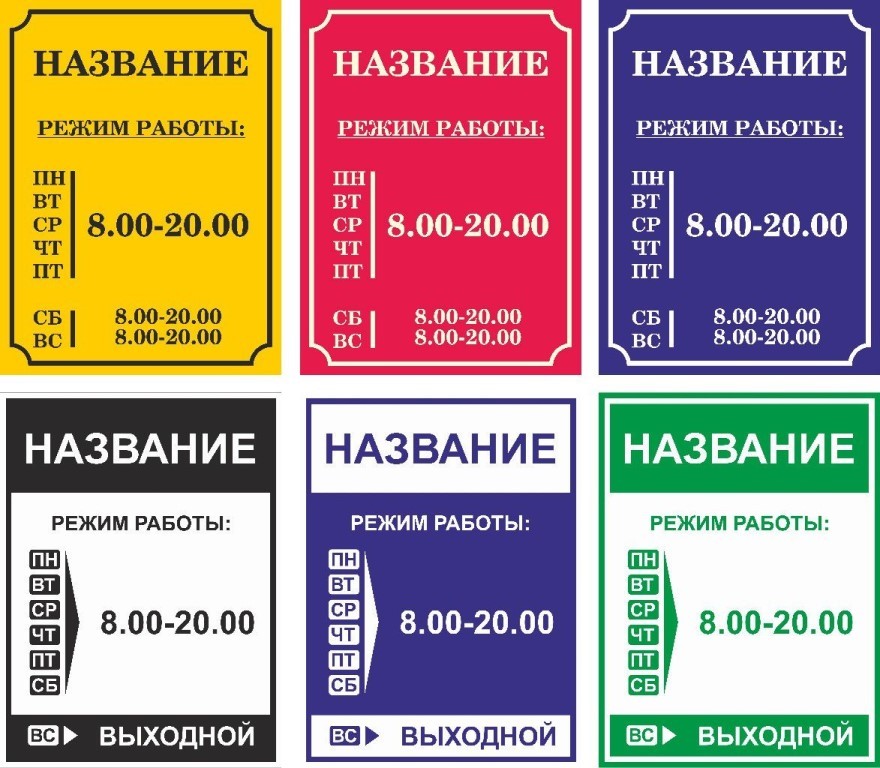 ИЗГОТОВЛЕНИЕ ТАБЛИЧЕК «РЕЖИМ РАБОТЫ»