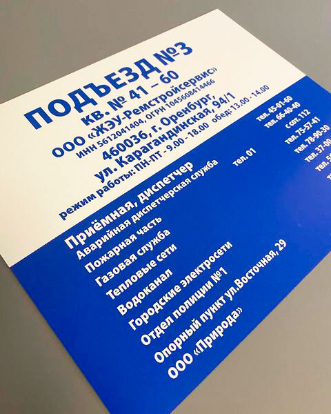 • Таблички из ПВХ пластика толщиной 3 мм, изготовим любого размера.