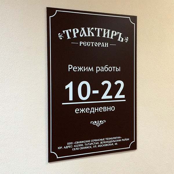 Таблички «Режим работы»