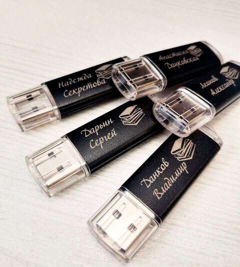 Лазерная гравировка на флеш-носителях, полноцветная печать на флешках помогает с точностью наносить картинку: логотип и название компании/корпорации. Профессионально накладывается рисунок любой сложности на кожаную флешку, usb-накопитель, портативную деревянную зарядку, пластиковую флешку, повербанку или металлическую usb-флеш-карту.